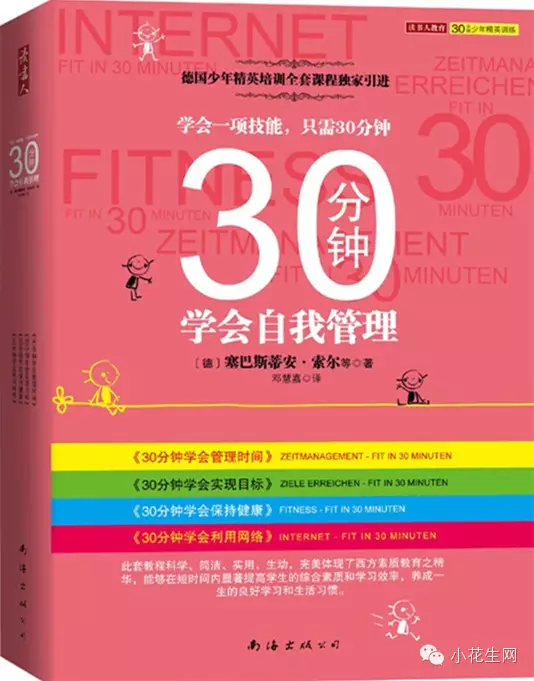 《30分钟少年精英训练》系列图书:进入21世纪以来德国最著名的青少年素质教育图书,畅销十年。德国人的这套书,就是让青少年从小养成良好的习惯。这套书,一如德国人的严谨思维,像德系车的生产线一般的严密流程,没有一丝的赘述。书中用浅显易懂的语言,帮助孩子在学习和生活中遇到困难时,有了解决问题的指南,用科学的方法去面对问题、解决问题。