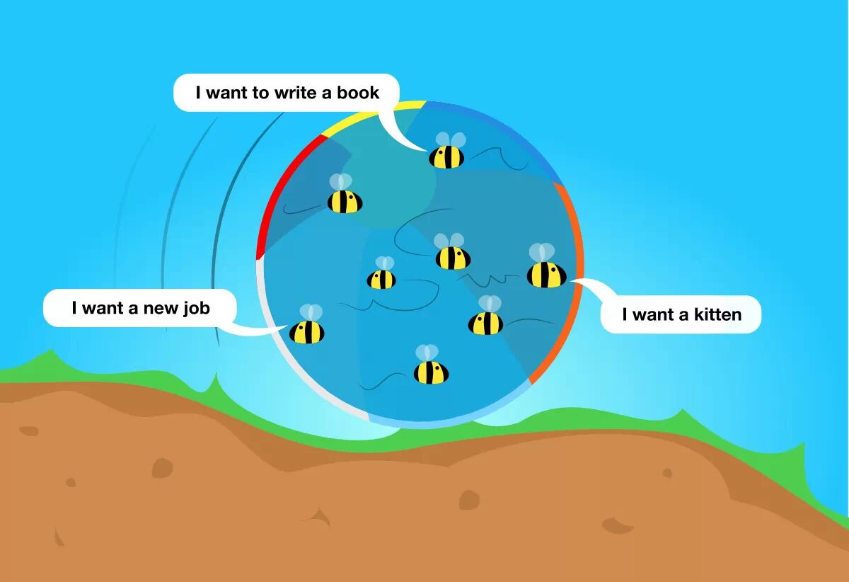你或许也看过Oliver Emberton的精妙比喻。他将我们的大脑比作就像灌满了蜜蜂的沙滩排球,上百个互相矛盾的冲动想法把我们推向不同的方向。