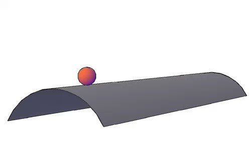 这三个小球是三种「平衡」的状态。左边这个小球是「稳定」的,如果它被挪动一定距离,只要这段距离不是太远,它都能恢复原状。中间这个小球无所谓稳定不稳定,如果它被挪动一定距离,它可以在新的地方安居乐业。右边的这个小球是「不稳定」的,哪怕稍微轻轻的碰一下,它也会一路滑落,再也回不到最初的地方。